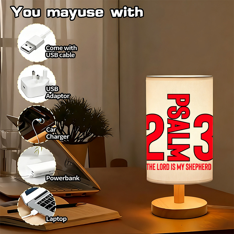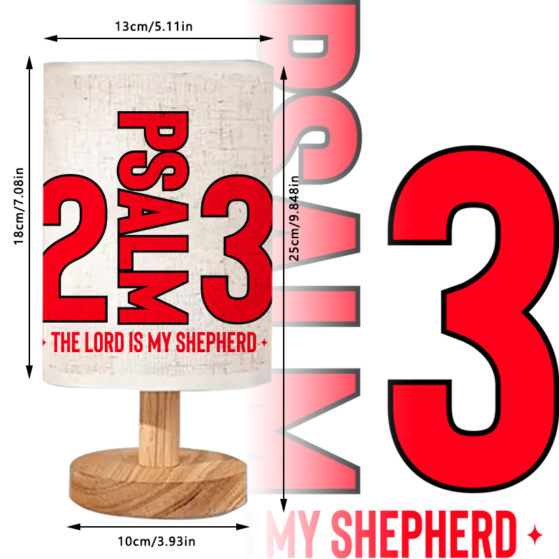 The Psalm 23 Printed Linen Table Lamp For Decor is an indoor tabletop lighting option designed for everyday use in home and office spaces. It features a linen-style shade with a verse-themed print and an upward-facing lighting method that helps create ambient illumination. The lamp is intended for placement on desks, side tables, shelves, and nightstands where a compact lighting fixture is useful. Its cable-powered design supports steady operation through a plug-in connection, and the push-button control provides simple on/off use without additional setup steps.