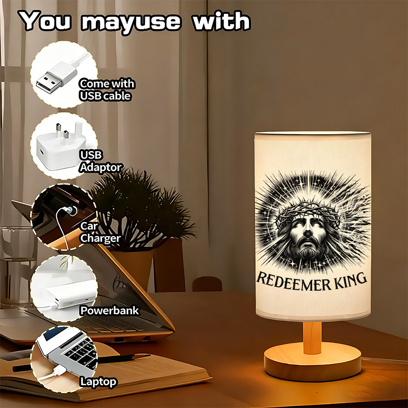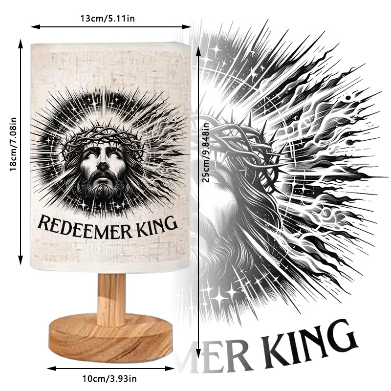 The Redeemer King Printed Linen Table Lamp With Artwork Design provides a straightforward lighting option that combines daily function with a themed shade design. The linen-style shade helps create softer illumination for indoor spaces, while the uplight method supports a gentle ambient effect that works well in bedrooms, living rooms, and office areas. The push-button control keeps operation simple, and the cable-powered format supports regular use without battery replacement or charging routines.