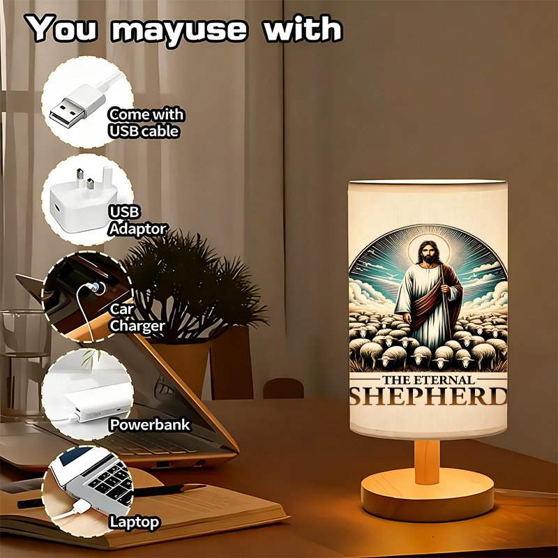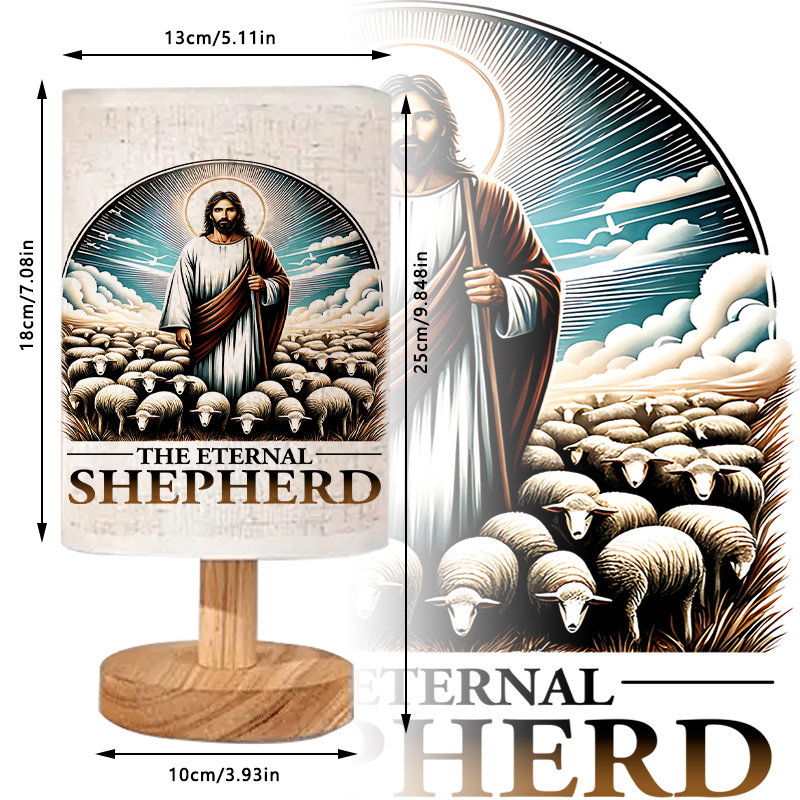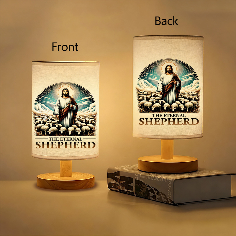 The printed text on the lamp surface reads The Eternal Shepherd. It brings a sense of focus without distraction. This table lamp functions well in private corners, whether placed beside a desk, within a quiet space at home, or in designated areas for regular devotion.