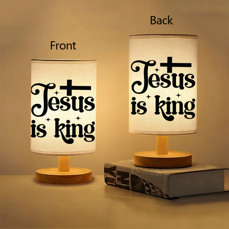 The Religious Themed Linen Table Lamp For Decor is a meaningful lighting piece designed to bring faith, warmth, and inspiration into your living space. Featuring a bold yet elegant “Jesus Is King” message with a cross symbol, this lamp serves as both a decorative accent and a reminder of belief and devotion. Its timeless design blends seamlessly into modern, classic, or faith-centered interiors.