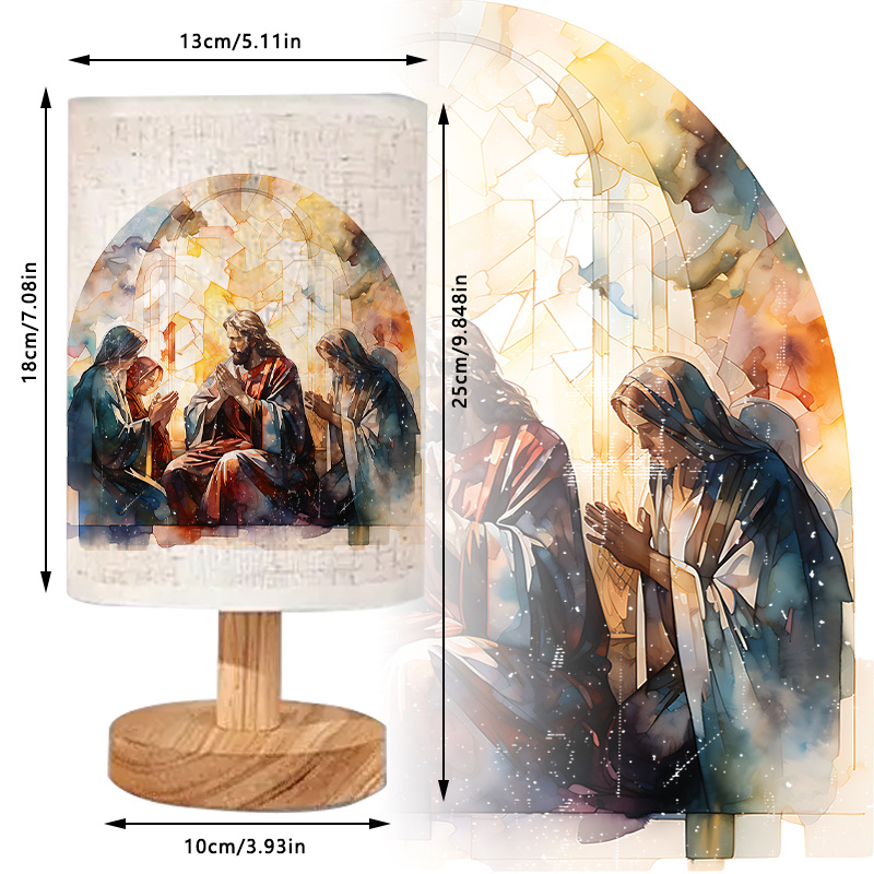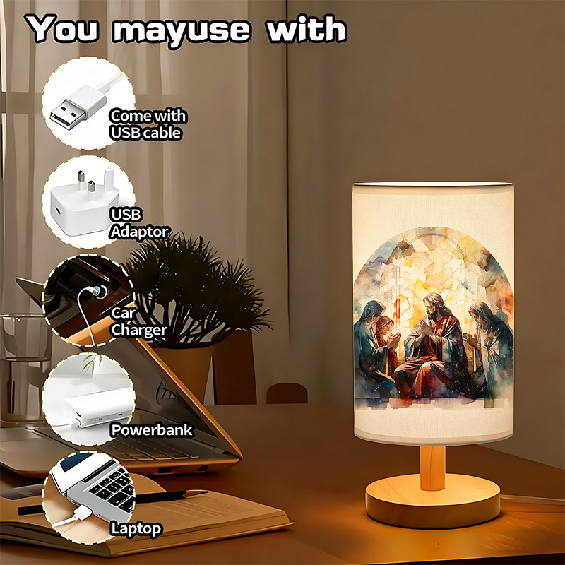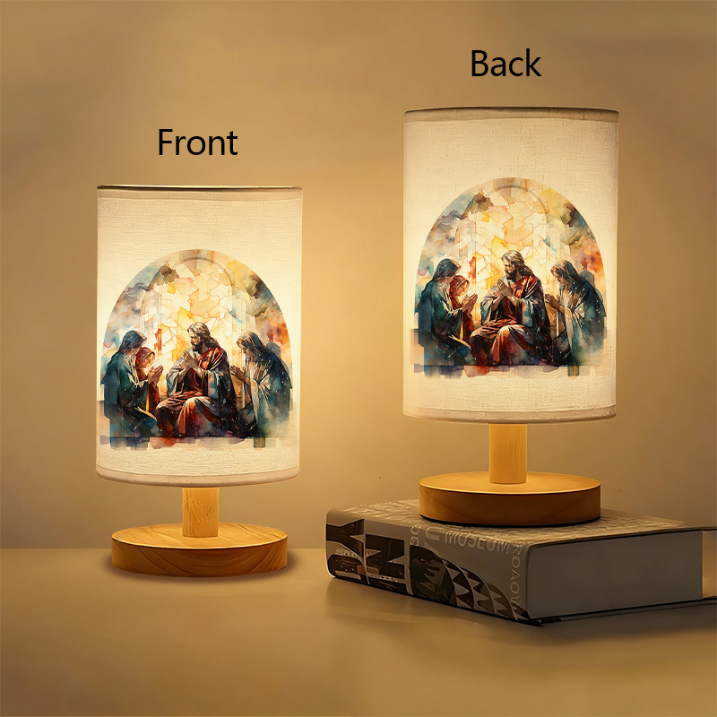 The Religious Themed Linen Table Lamp With Wooden Base is a meaningful lighting piece that brings spiritual presence and calm illumination into your home. Featuring a beautifully detailed depiction of the Last Supper printed on a linen fabric shade, this lamp creates a peaceful and reflective atmosphere. Its soft ambient glow highlights the artwork gently, making it suitable for quiet moments, prayer spaces, or everyday home décor. Designed with a natural wooden base and powered through USB, this lamp blends traditional faith-inspired art with modern functionality.