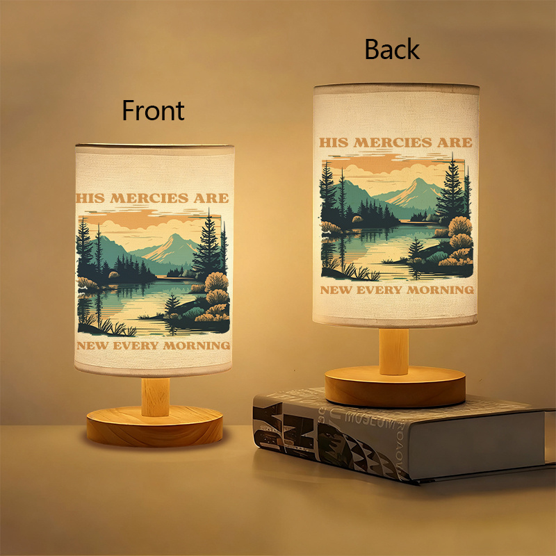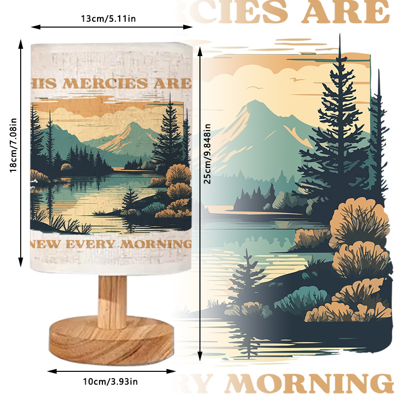 Bring style and meaning to your space with this Scenery Themed Linen Table Lamp featuring a scenic landscape print and an inspirational quote design. The printed linen shade displays a calm outdoor view with mountains, trees, and water. The artwork stands out with a clean modern look. It works well for daily decor and soft lighting needs.