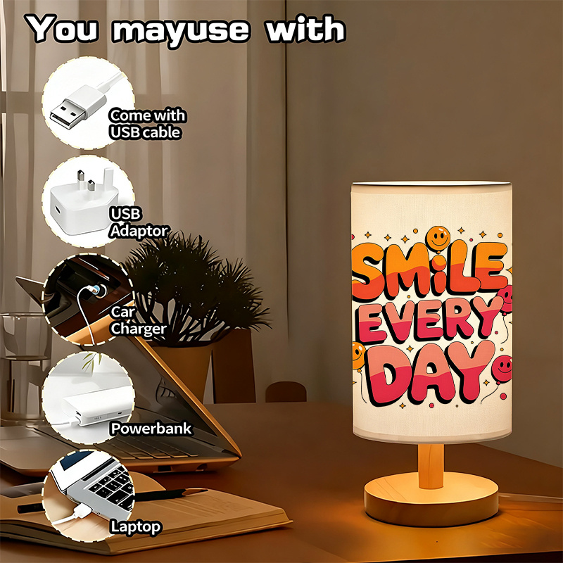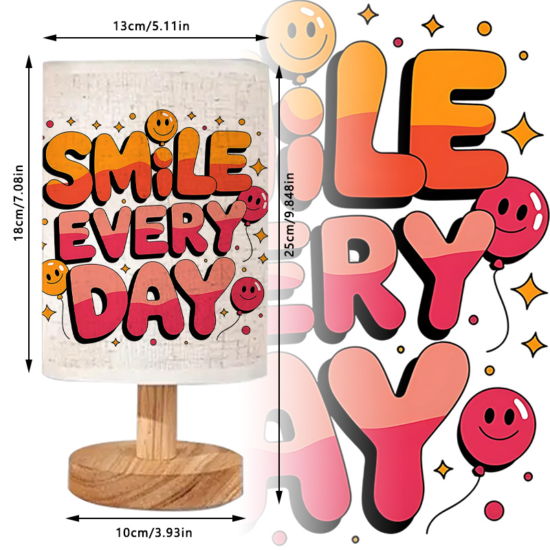 Introducing the Smile Every Day Printed Linen Table Lamp For Decor, a stylish and practical lighting solution for any space. Featuring a vibrant, "Smile Every Day" design, this lamp brings positivity and light to your home or office. With its USB-powered feature, it's perfect for those seeking a flexible, energy-efficient lamp that can be powered by a variety of devices. Whether on a desk, bedside table, or in your living room, this lamp will brighten your room with both functionality and cheerful decor.