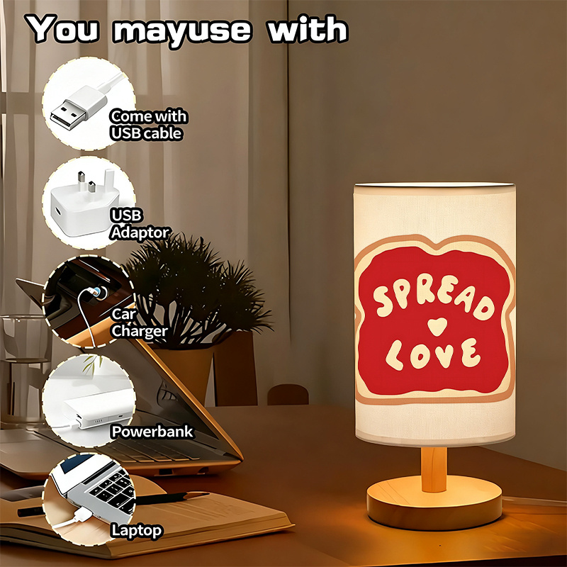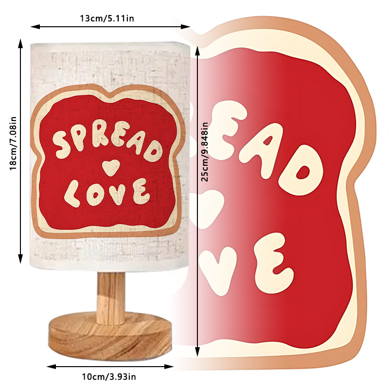 Spread Message Pattern Linen Table Lamp is a modern tabletop lamp designed for indoor lighting and décor styling in bedrooms, living rooms, study areas, and reading corners. The design shown features a cylindrical linen shade with a bold, centered graphic and a simple base that fits neatly on desks, shelves, side tables, and dressers. The printed shade acts as a décor accent during the day, and when switched on, the linen surface helps distribute light across the surrounding area in a more diffused way than direct overhead lighting.