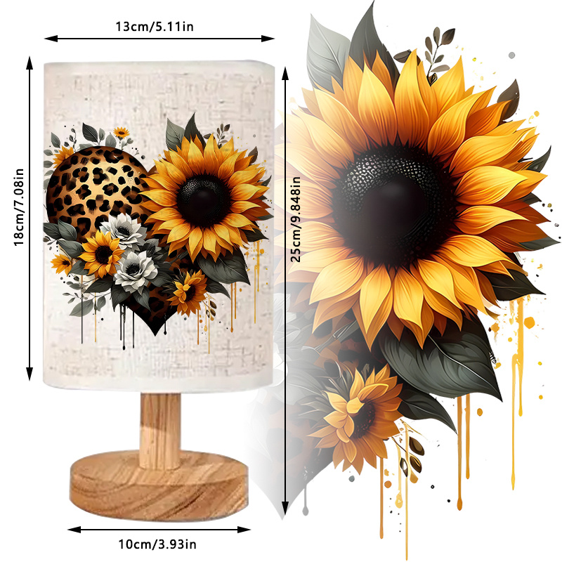To maintain the appearance of the Sun Flower Printed USB Powered Linen Table Lamp, gently dust the linen-style shade using a dry or lightly dusted cloth. Avoid applying liquids directly to the printed surface to prevent damage to the design. The wooden base may be wiped with a clean cloth to remove dust buildup.