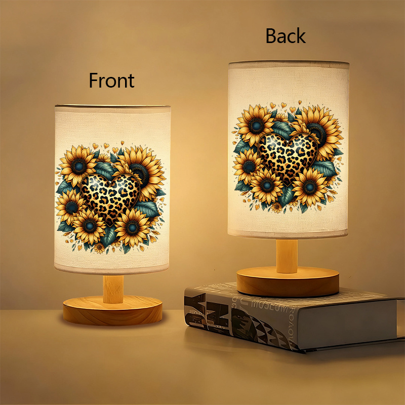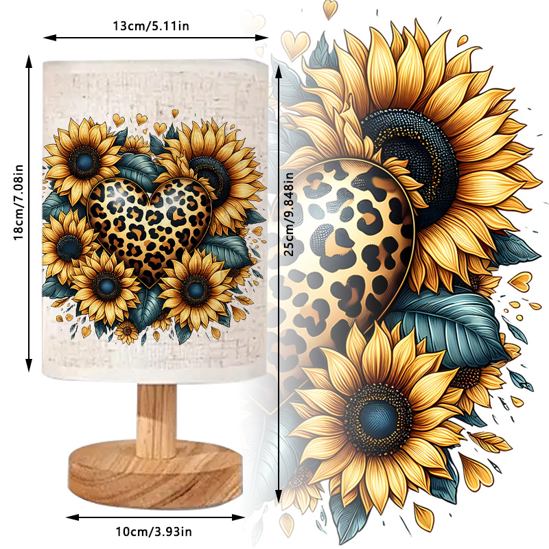 Sunflower Leopard Print Linen Table Lamp is a modern tabletop lamp designed for indoor lighting and décor styling in bedrooms, living rooms, reading corners, and desk setups. The design shown features a sunflower cluster with an animal-print central motif, creating a bold graphic that stands out on a table surface while still pairing well with simple room layouts. The cylindrical linen shade keeps the artwork visible from multiple angles, so it works as a décor accent during the day and as a lighting piece in the evening.