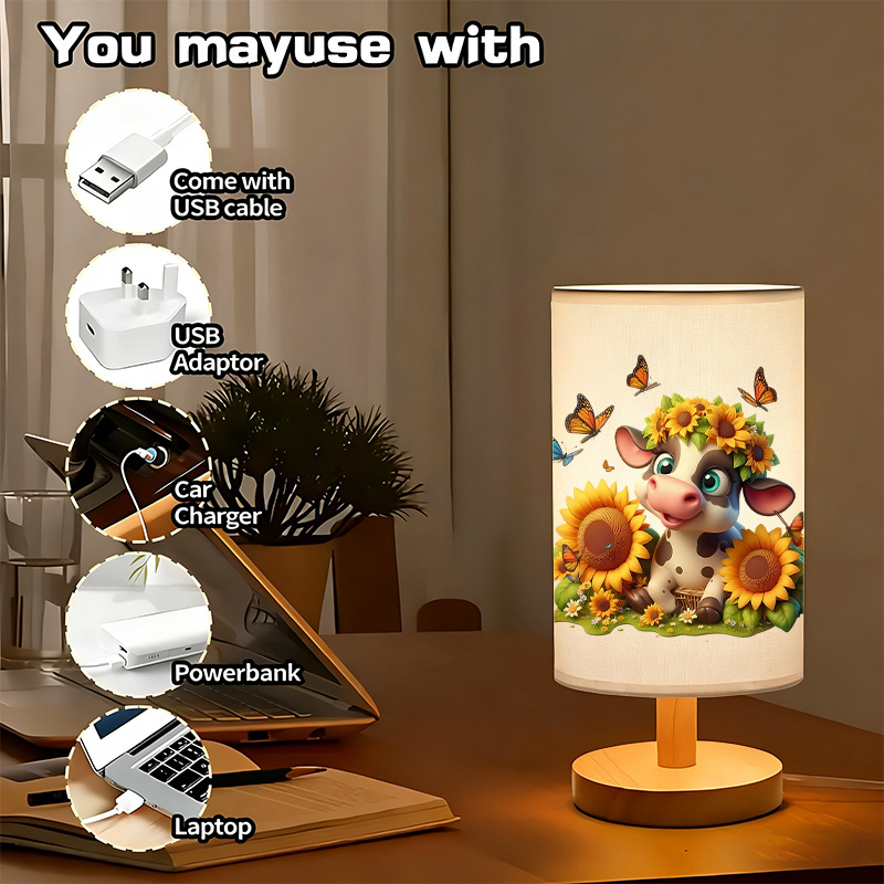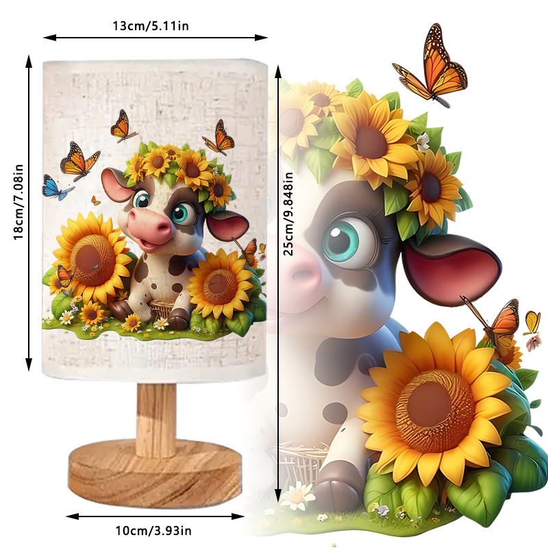 The Cow Sunflower Table Lamp combines structured lighting and themed display in a single unit. Built with a solid base, printed shade, and LED function, it fits into interior setups where light and artwork coexist.