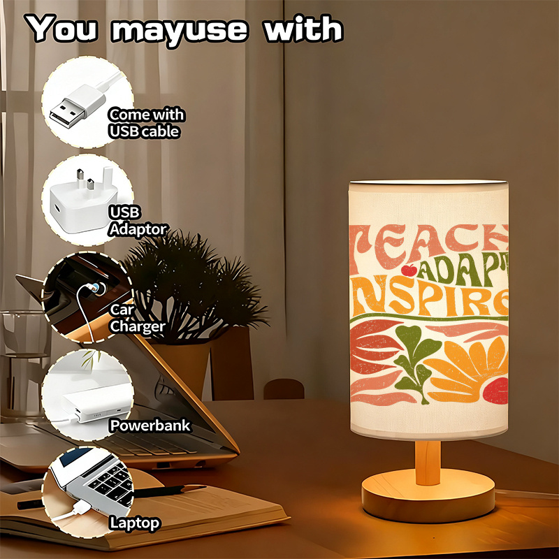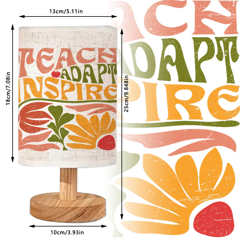 The Motivational Message Table Lamp provides more than ambient light—it offers focus. Its printed quote reminds users of three key actions: teach, adapt, and inspire. The floral illustration enhances visual impact without distraction.