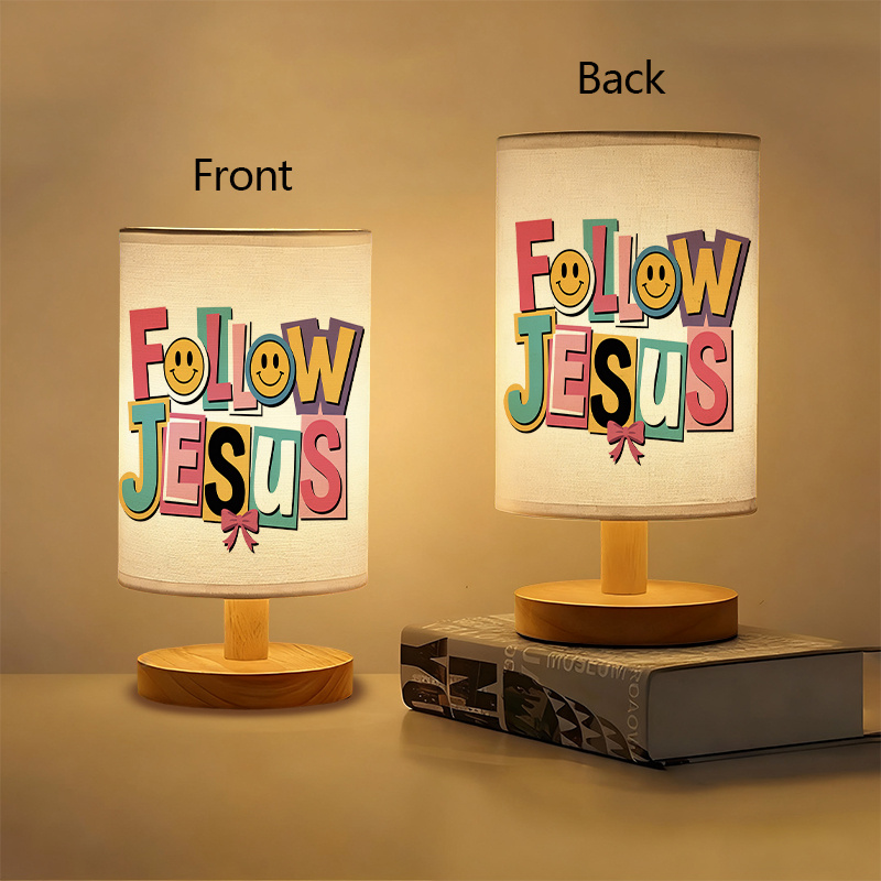 USB Powered Linen Table Lamp With Modern Print is an indoor table lamp designed for everyday lighting on flat surfaces such as desks, side tables, shelves, and entry consoles. It features a linen-style cylinder shade with a printed faith-themed text design that remains visible when the lamp is off and becomes illuminated when the lamp is on. The lamp format is compact, making it suitable for smaller rooms and spaces where tabletop area is limited. It can be placed in bedrooms, living rooms, home offices, guest rooms, and reading corners where an extra light source supports daily routines such as reading, journaling, or general room lighting.