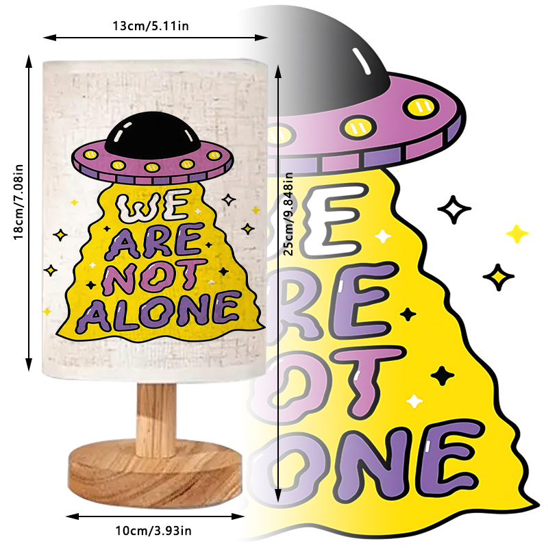 This We Are Not Alone Printed Linen Table Lamp brings creativity and warmth into your space. The “We Are Not Alone” message adds a fun and imaginative look, while the soft linen shade creates a cozy glow perfect for evening use. USB power makes it easy to connect to multiple devices, offering flexibility in placement. The wooden base adds stability and a natural look that balances the artwork. Compact and lightweight, this lamp fits perfectly on bedside tables, desks, or shelves. It’s a great décor choice for space enthusiast and anyone looking to add personality to their room.