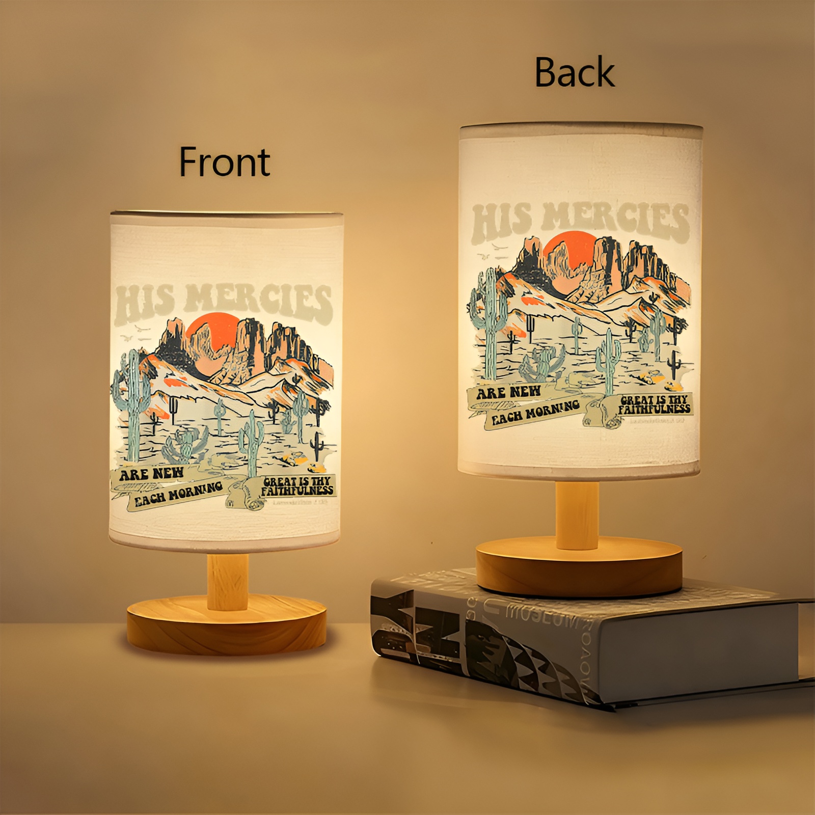 Linen Table Lamp Base is a practical indoor tabletop lamp designed for compact spaces and daily routines. With a linen-look fabric shade featuring a western desert landscape printed design and a round base for steady placement, it works well on nightstands, desks, shelves, and side tables. Use it to add soft lighting for evening routines, reading corners, or ambient room lighting while also adding a scenic décor element that complements a variety of interior styles.