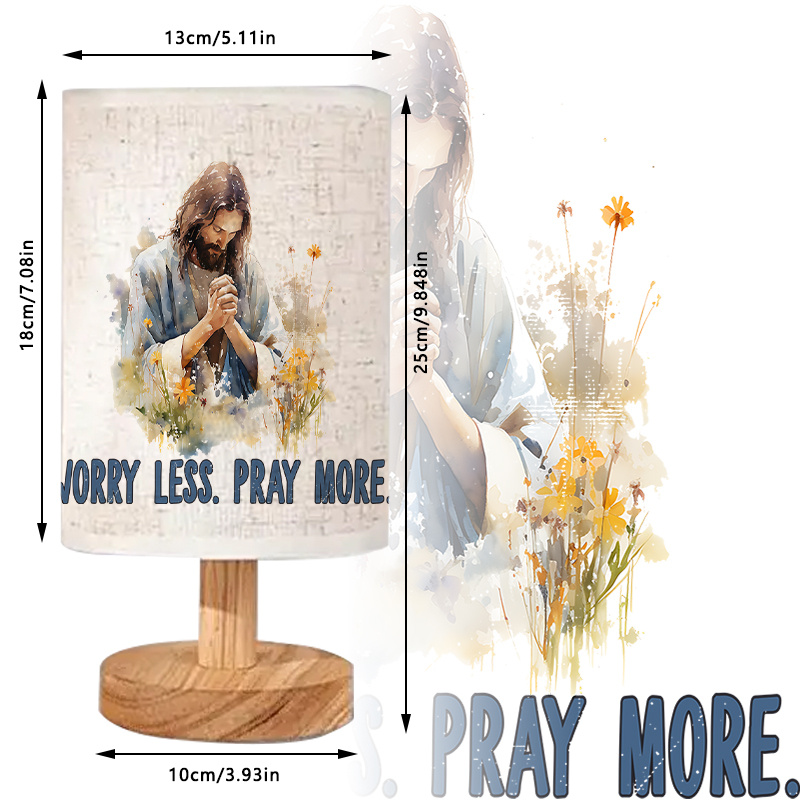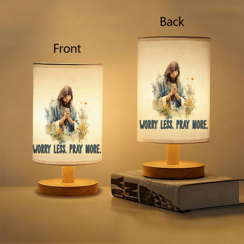 Create a calming presence in quiet spaces with the Worry Less Pray More Quote Printed Table Lamp With Praying Figure Artwork. This product is designed for those who seek reflective lighting combined with thoughtful artwork. The main quote, Worry Less Pray More, appears printed on the lamp’s exterior and brings a steady message for mindful spaces.